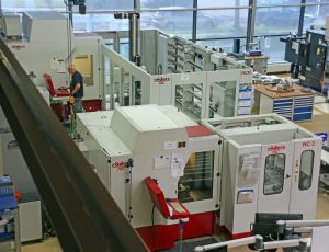 Un segundo sistema más antiguo de Röders, un RXP 500 DS con un cargador de carrusel RC2 para las piezas paletizadas, tiene principalmente la tarea de producir los electrodos EDM de hundimiento requeridos, principalmente con grafito pero a veces también cobre.